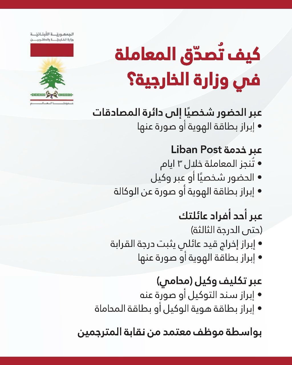 الخارجية تنشر صورة تشرح كيفية تصديق المعاملات
