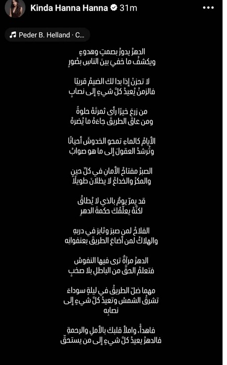 وأضافت في منشور لاحق: "وما من يد إلا ويد الله فوقها، ولاظالم إلا سيُبلى بأظلم".