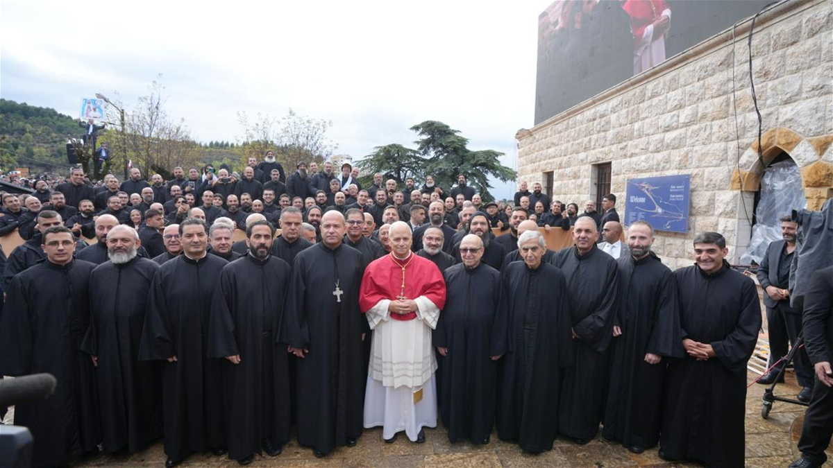 وقبيل مغادرته البابا دير مار مارون عنايا- ضريح القديس شربل متجهاً نحو مزار سيدة لبنان في حريصا، التقط البابا لاوون الرابع عشر صورا تذكارية مع الكهنة في الدير بعدما قام بجولة داخل أرجائه حيث كان يحيي ويبارك ويصافح المؤمنين المتجمهرين في مختلف زواياه لنيل البركة والسلام.