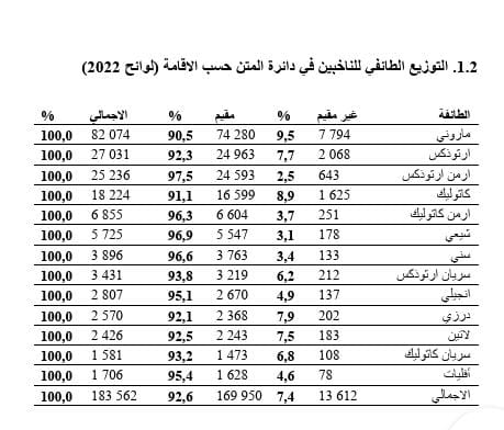 وفي هذا السياق، يقول مدير مكتب الاحصاء والتوثيق كمال فغالي انه "سيكون لغير المقيمين في دائرة المتن تأثير كبير بسبب عدد المسجلين. فنسبة غير المقيمين المتوقع مشاركتها قد تصل إلى 70% (حوالي 9,500 مقترعًا) لأن مراكز الاقتراع ستزيد عن المرة السابقة وقد يتخطى حجمهم المقعد الواحد ويساهم في رفع العتبة".