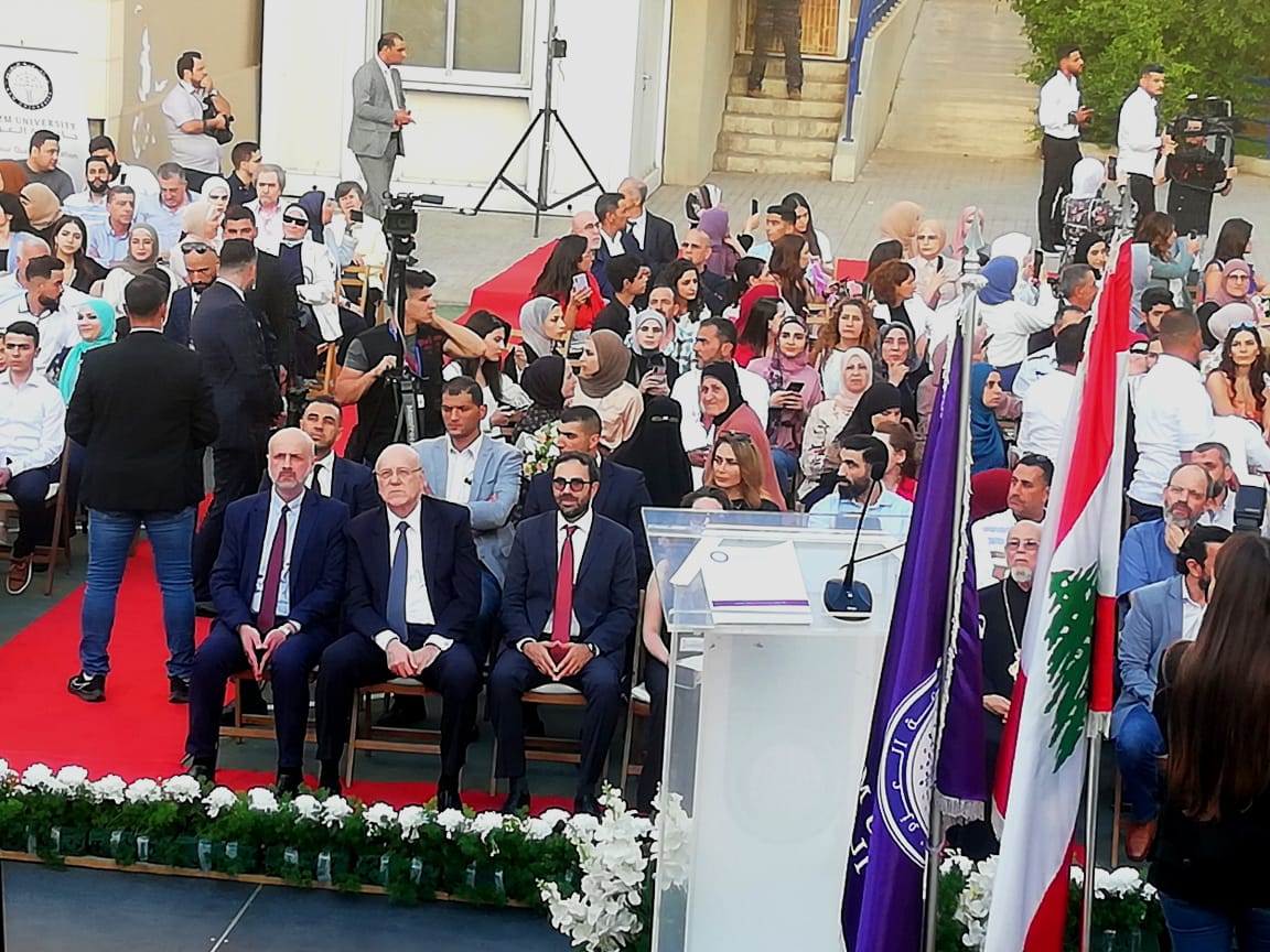 كما أننا، من هذا الصرح الجامعي والتربوي الذي نفتخر به وبطلابه والقيمين عليه، نؤكد ان لبنان، رغم الظروف الصعبة، سيبقى عنوانا للعلم والمعرفة ورائدا في محيطه والعالم. وسنوّفر لجامعة العزم وسائر قطاعات العزم التربوية كل الامكانات للتقدم اكثر فاكثر والريادة والتطوّر.