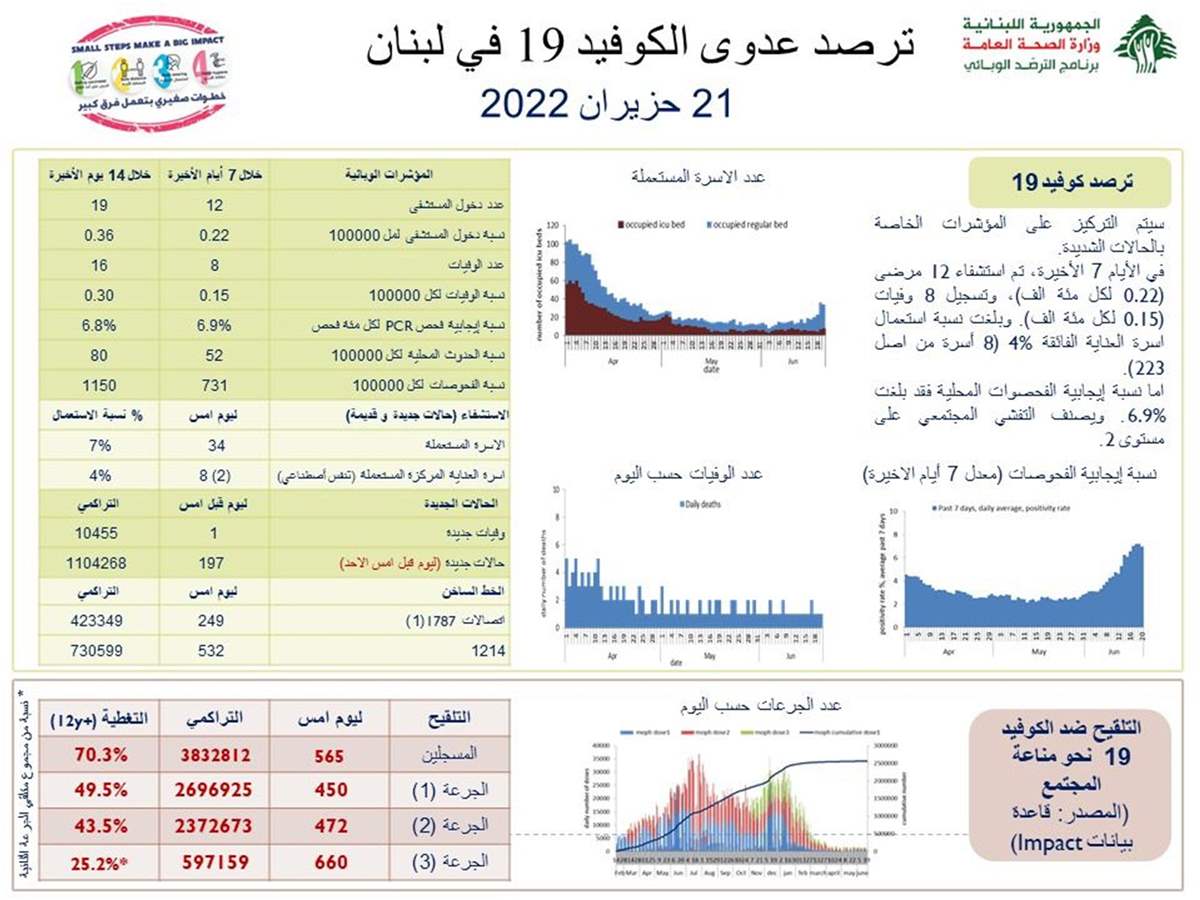 كم سجّل عدّاد كورونا في لبنان اليوم؟