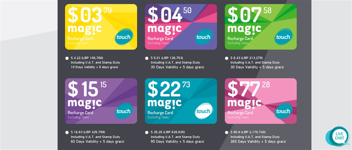 طرحت شركة "تاتش"، مساء اليوم السبت، تعديلات على أسعار بطاقات التشريج الصادرة عنها، إذ وضعت تسعيرة ثاتبة بالدولار الأميركي لكلّ بطاقة، إلا أن السّعر بالليرة
