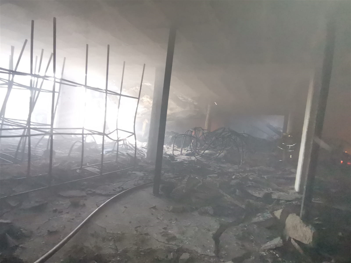 دخلت فرق الإطفاء التابعة للدفاع المدني إلى معمل السجاد في بلدة زفتا.