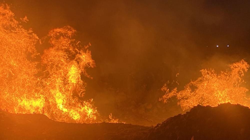 حريقٌ كبير فوق أنفه.. النيران هائلة وفرق الإطفاء تسعى لإخمادها