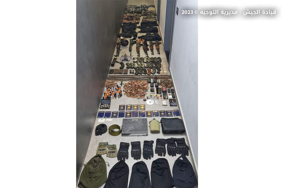 وقتله وكشف الملابسات المحيطة بالقضية، عمدت المديرية بعد سلسلة من التقصيات إلى تنفيذ عمليتين ميدانيتين بتاريخ 27/2/2023، أفضت الأولى إلى العثور على مخزن أسلحة وذخائر حربية وأعتدة عسكرية وأجهزة اتصال وأقنعة وقفازات ومستندات شخصية وذلك داخل غرفة سرية في مدرسة الأندلس العائدة إلى الموقوف