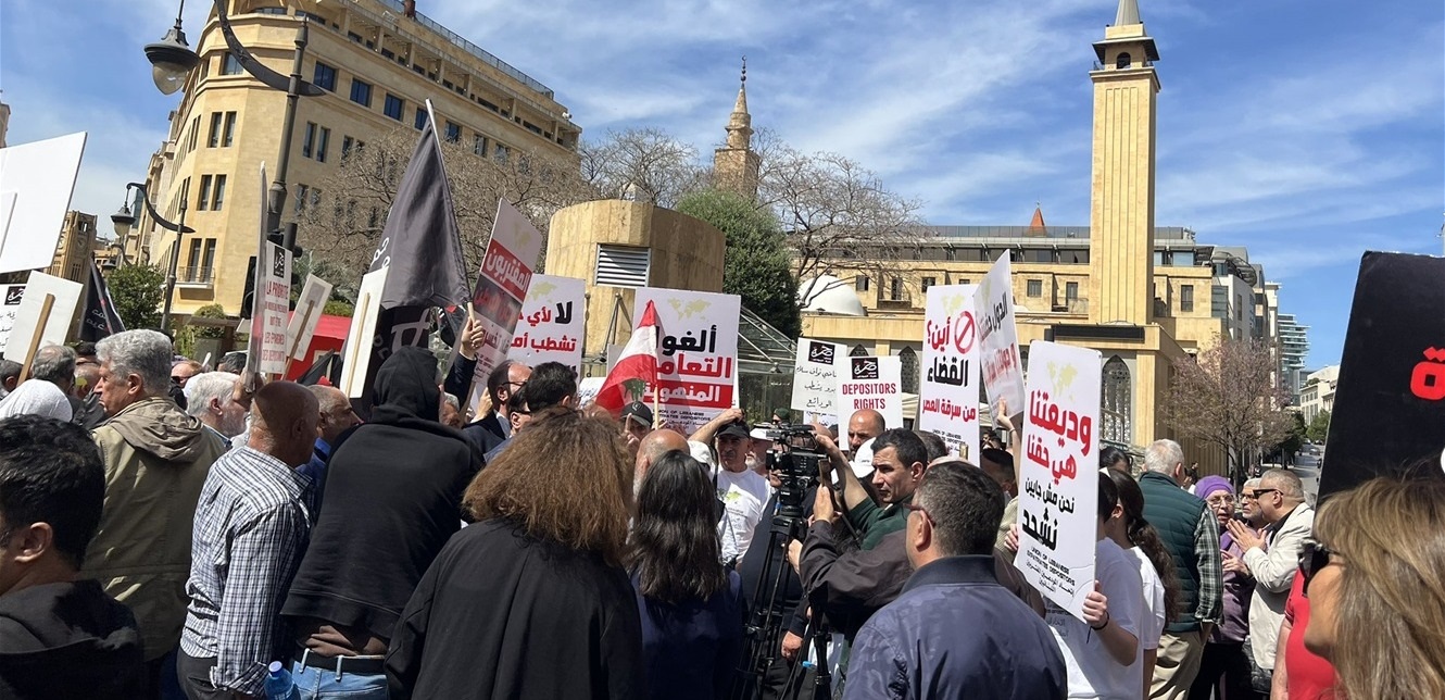 نظمت جمعية "صرخة المودعين" تظاهرة احتجاجية أمام مجلس النواب، وسط اجراءات أمنية في محيط المجلس، رفضا لخطة الحكومة التي وصفتها بأنها "خالية من أي حل فاعل وجدي لمعالجة قضية المودعين"، وذلك بمشاركة فاعلة من جمعيات وهيئات المودعين ومواطنين الذين رفعوا يافطات تطالب "باسترداد أموالهم كاملة التي نهبت من المصارف"، مستغربين "التأخر الحاصل من المعنيين في هذا الملف الحسّاس منذ ما يقارب الخمس سنوات دون جدوى تذكر".