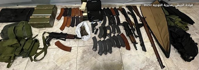 ، وضبطت أسلحة وذخائر حربية ومعدات ومواد أولية تُستخدم في تصنيع المخدرات. وتجري المتابعة لتوقيف المطلوبين.