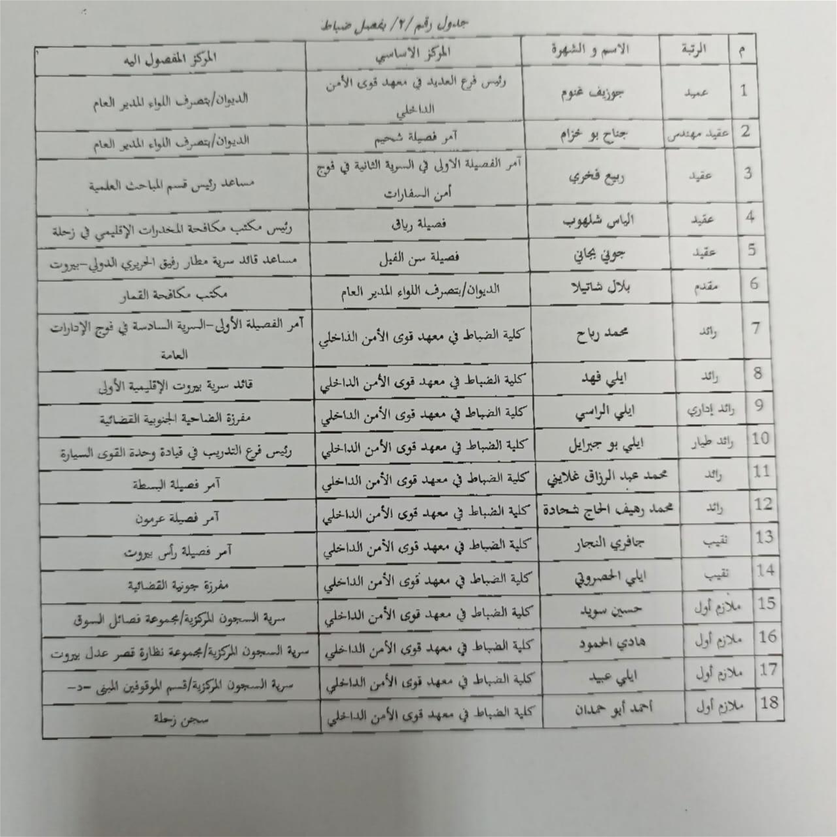 بالأسماء- تشكيلات جديدة لـ58 ضابطاً في قوى الأمن الداخلي