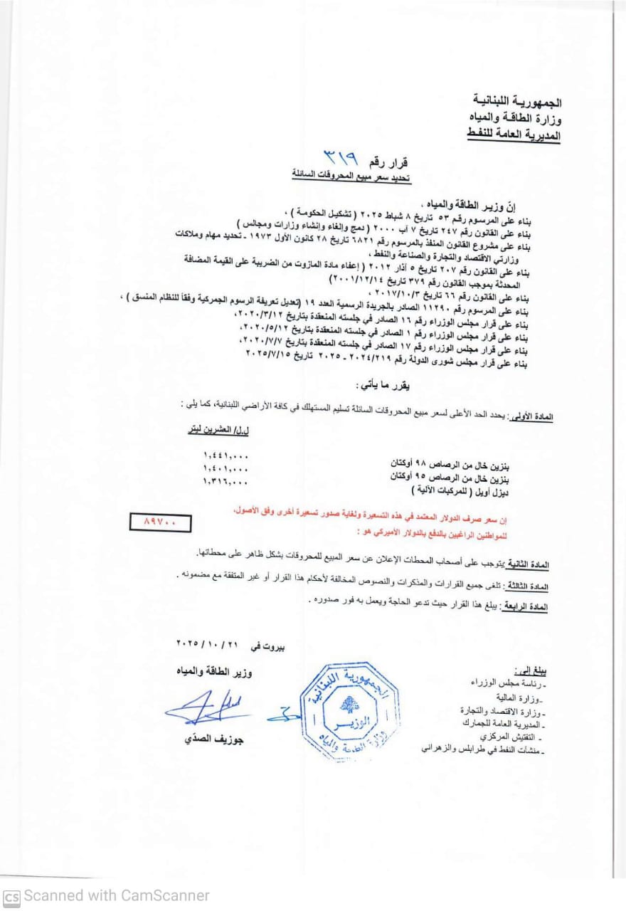 إنخفض اليوم، سعر صفيحتي البنزين 95 و98 أوكتان 14 آلف ليرة والمازوت 12 ألف ليرة وقارورة