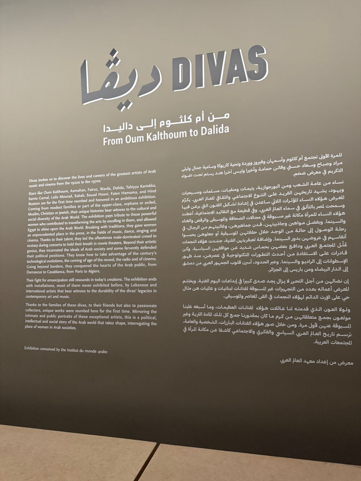 إلى داليدا"، بالتعاون مع معهد العالم العربي، كرحلة متعددة الوسائط عبر تاريخ الموسيقى العربية وأنوثتها المتألقة. بعدما حطّ المعرض رحاله في