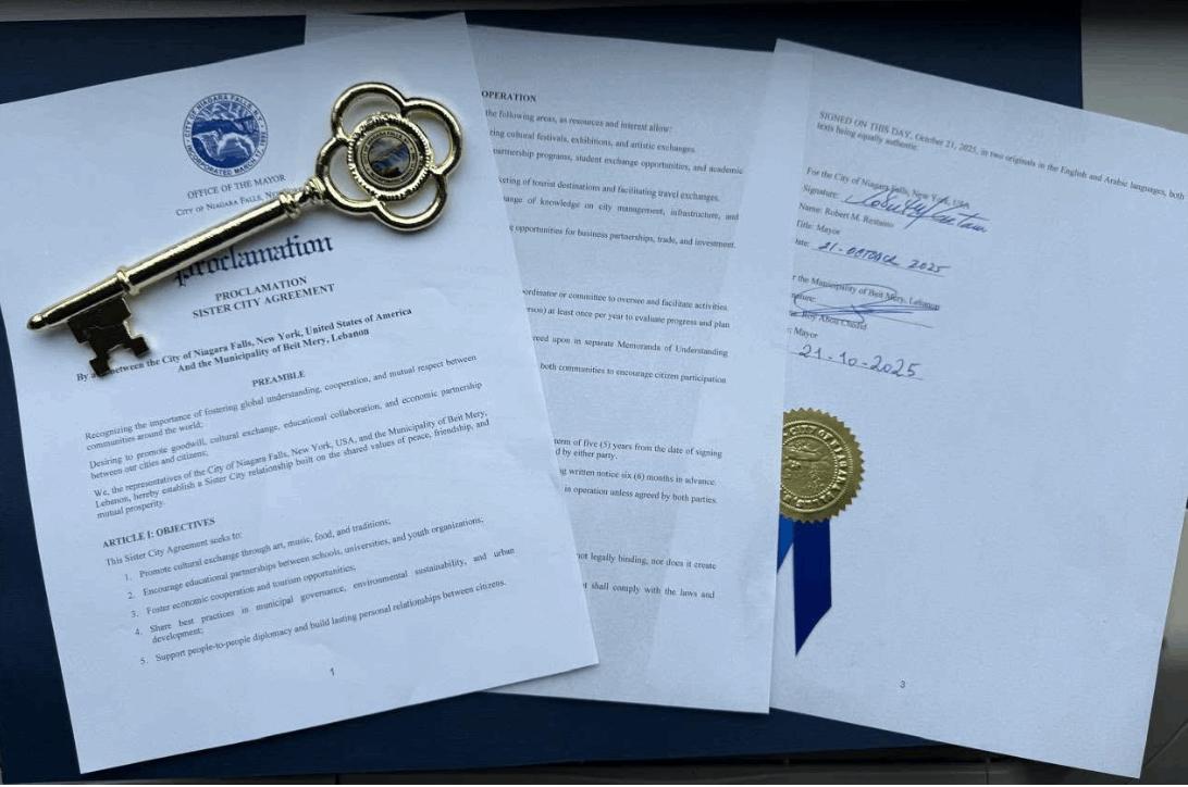 توقيع "اتفاق توأمة" بين بيت مري ومدينة نياجارا فولز – نيويورك