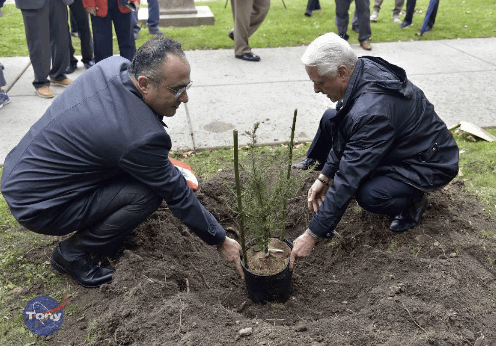 وخلال الزيارة، جرى غرس شجرة أرز أمام مبنى بلدية نياجارا فولز كرمز للعهد على هذا التعاون.
