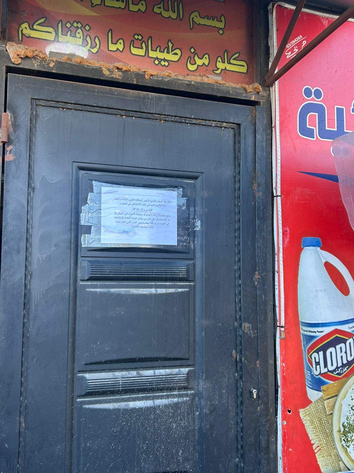 الاقليمي بإقفال مؤسسة لبيع المواد الغذائية بالشمع الأحمر في بلدة البيسارية - منطقة العاقبية، يديرها شخص سوريّ بطريقة غير شرعية.