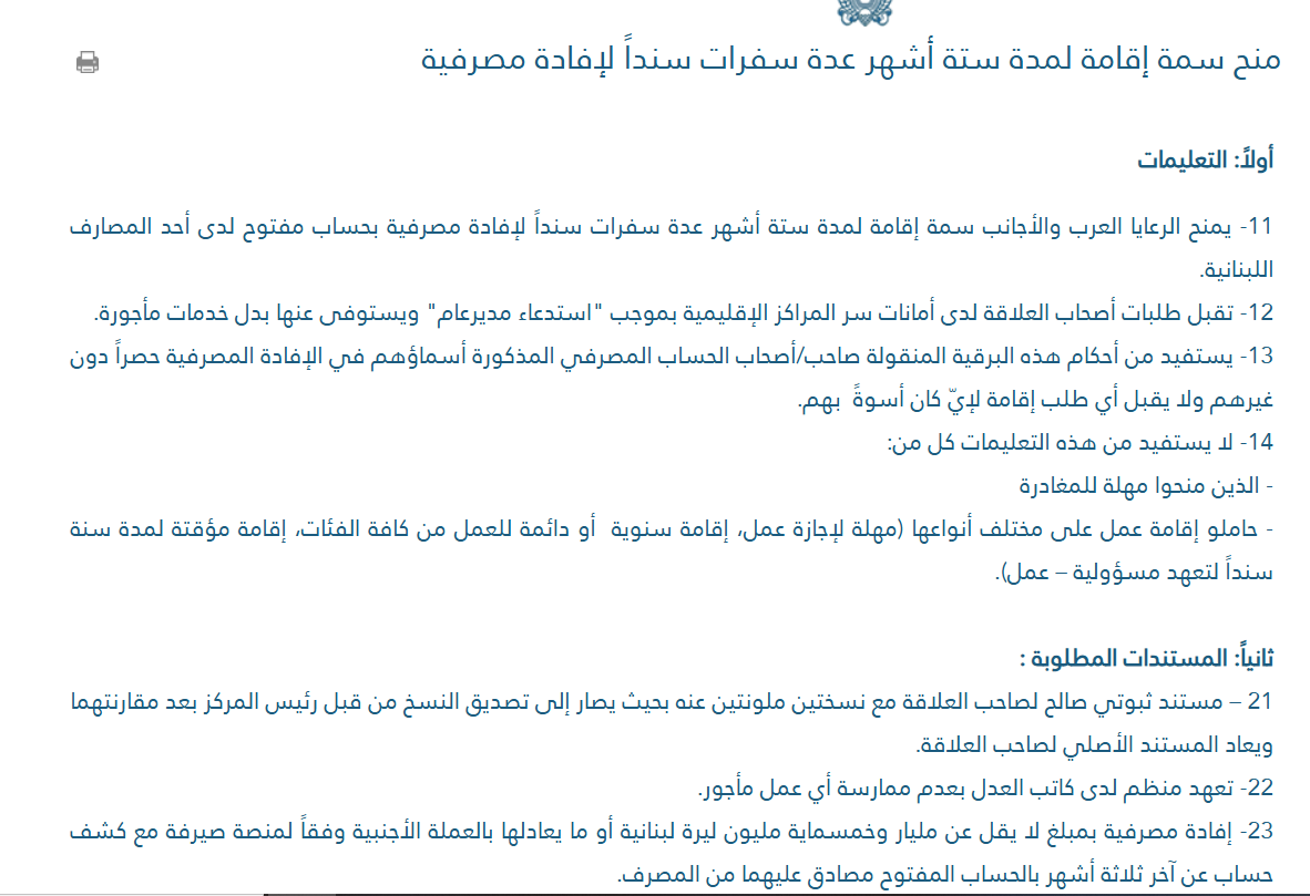 ، عن أصول منح الرعايا العرب والأجانب سمة إقامة لمدة ستة أشهر عدة سفرات سنداً لإفادة مصرفية.