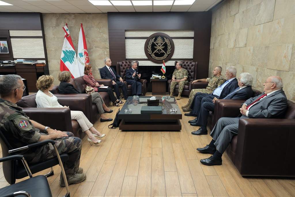 العماد رودولف هيكل يرافقه السفير كرم وعدد من اعضاء الهيئة الادارية . وكانت الزيارة مناسبة للإشادة بالدور الذي يقوم به الجيش في حفظ الامن والاستقرار في لبنان حيث حيا الأميرال