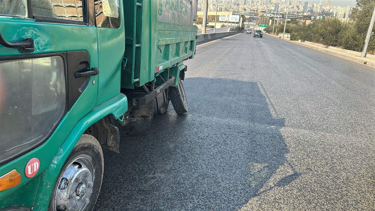 تعطل شاحنة على اوتوستراد الحازمية صعودا و حركة المرور كثيفة في المحلة