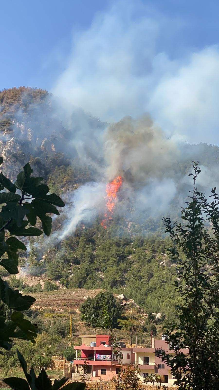 النيران اقتربت من المنازل.. حريق كبير في حرج بلدة دبعل (صور)