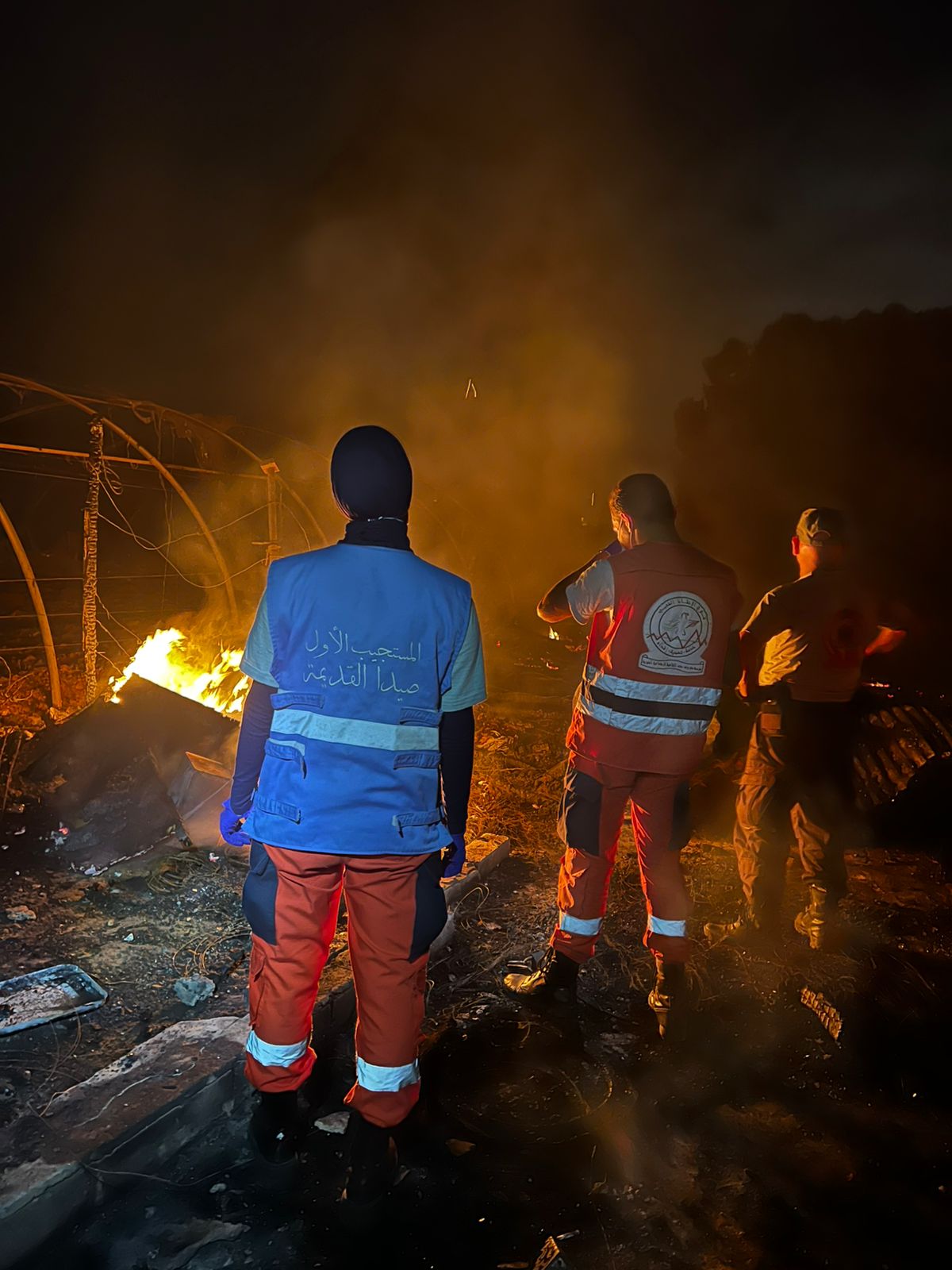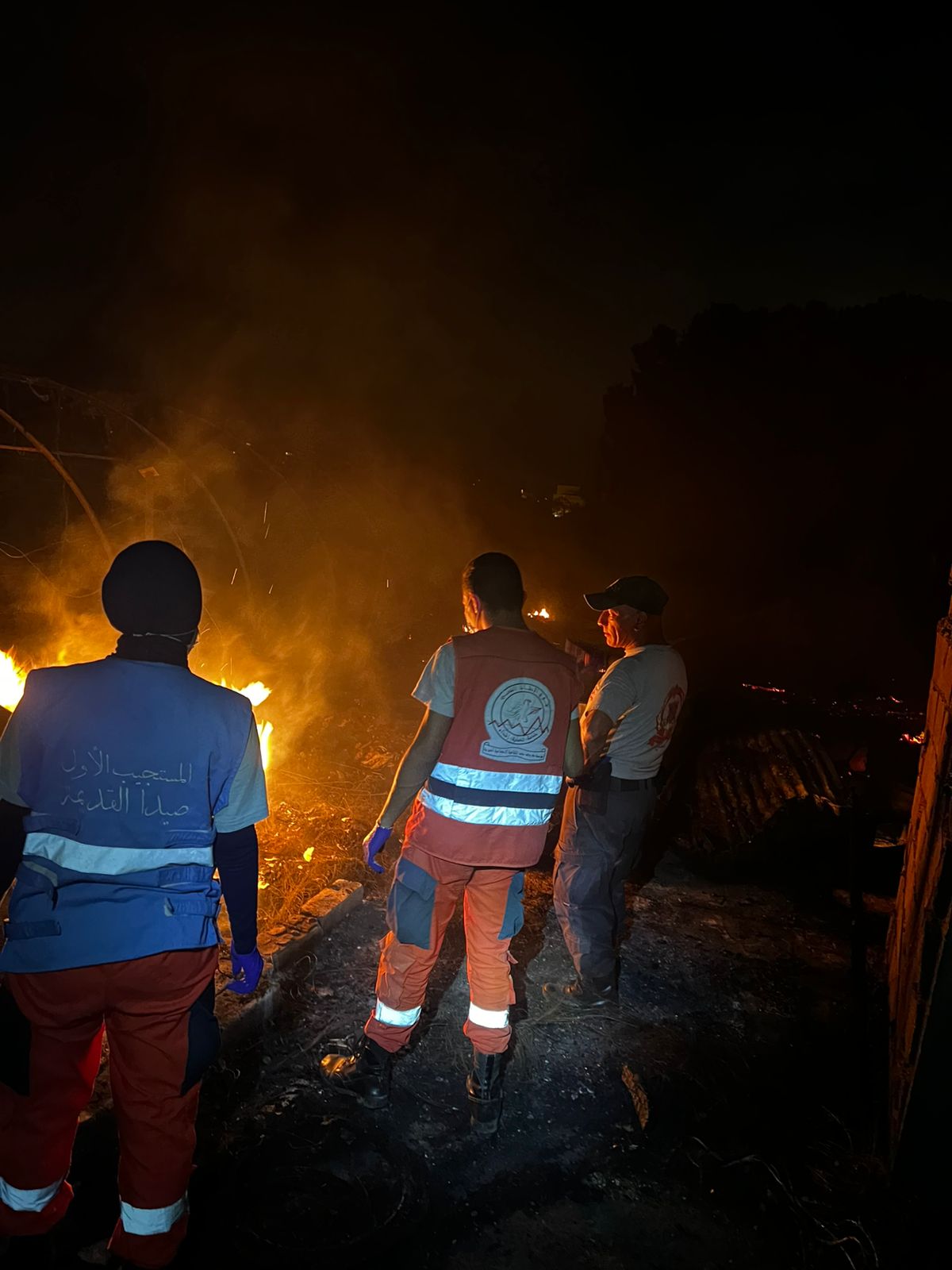 وعمل عناصر الدفاع المدني على إخماد النيران، كما حضر إلى المكان عناصر فوج الإنقاذ الشعبي في