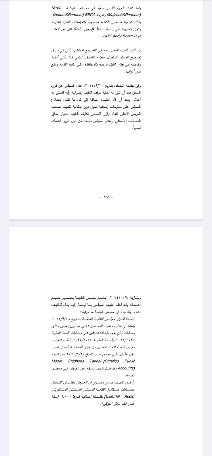 المصري عرض عمل النقيب والنقابة طيلة فترة ولايته