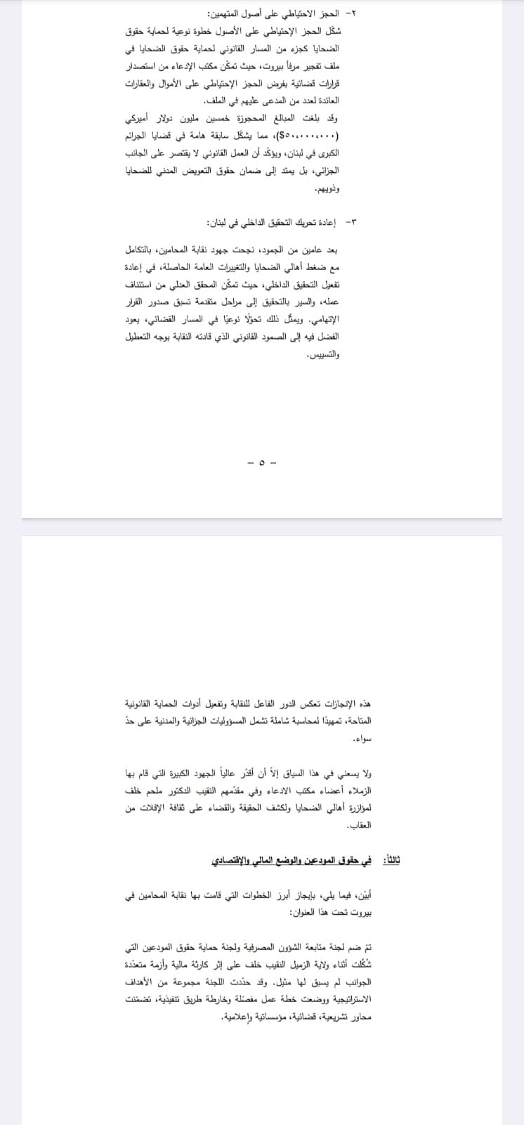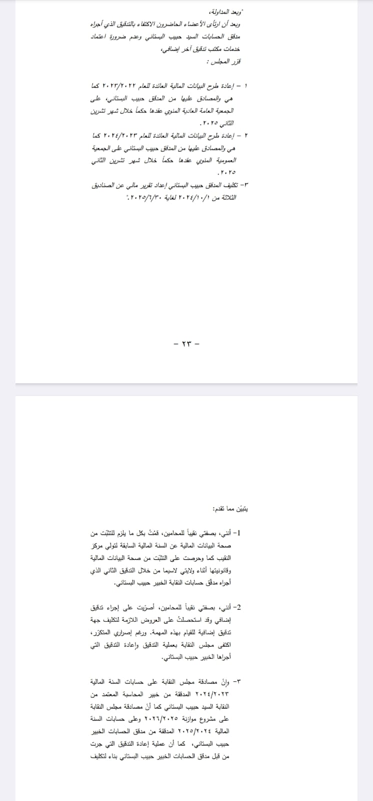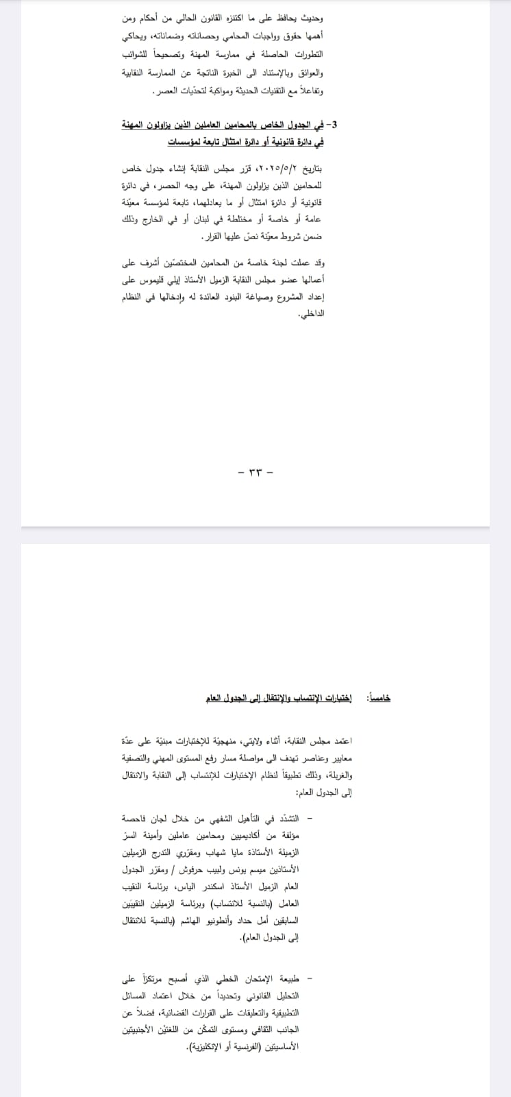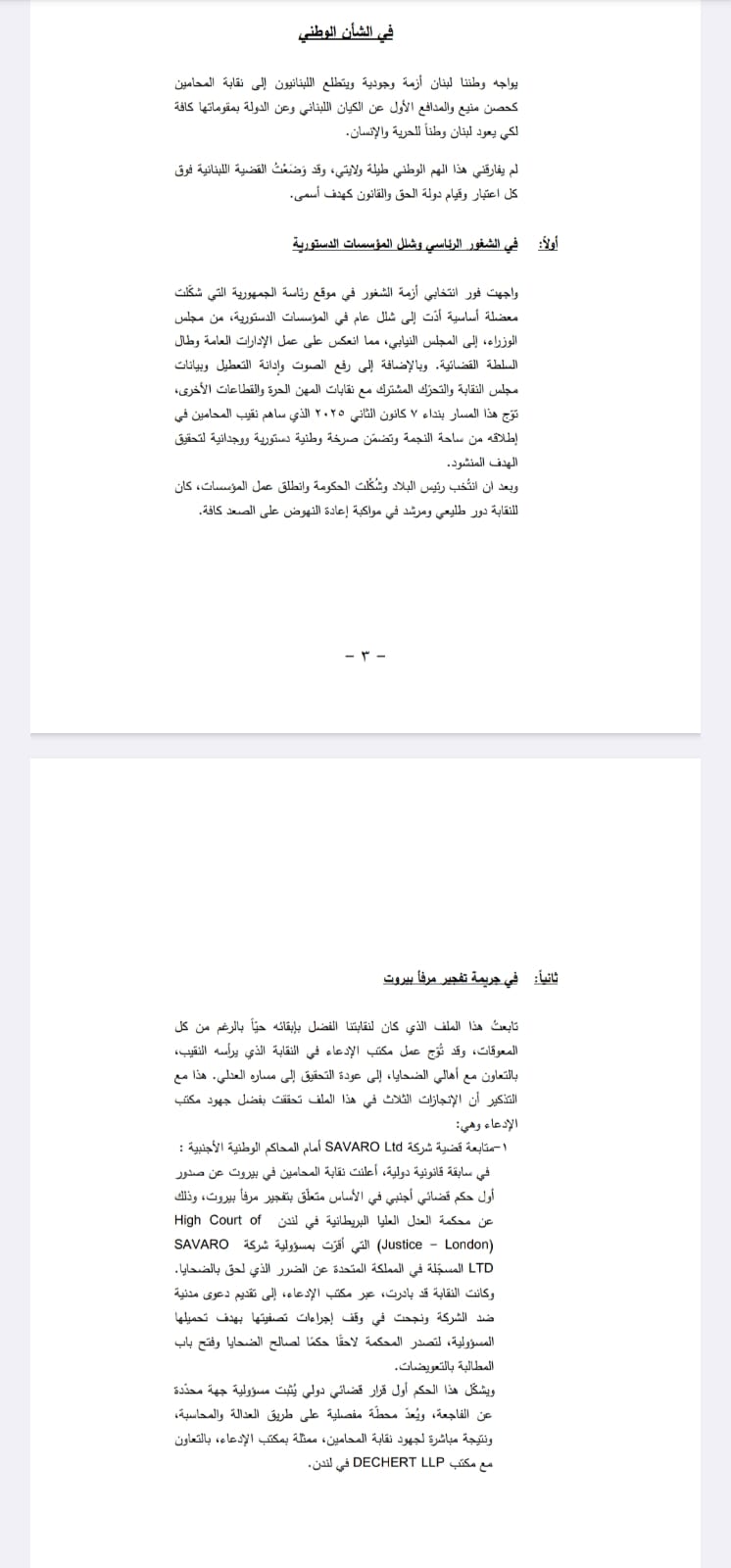 ، في نهاية ولايته، بيانه إلى الجمعية العمومية، المتضمّن عرضًا لعمل النقيب والنقابة على الصعيدين الوطني والنقابي طيلة فترة ولايته.