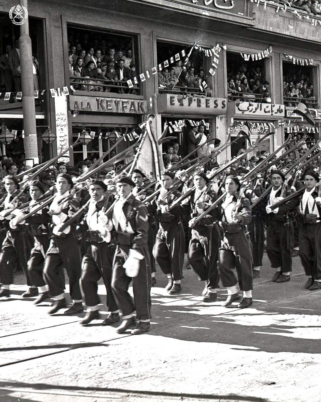 "، صوراً قديمة لعرض عسكريّ أقامه الجيش عام 1946 بمناسبة عيد