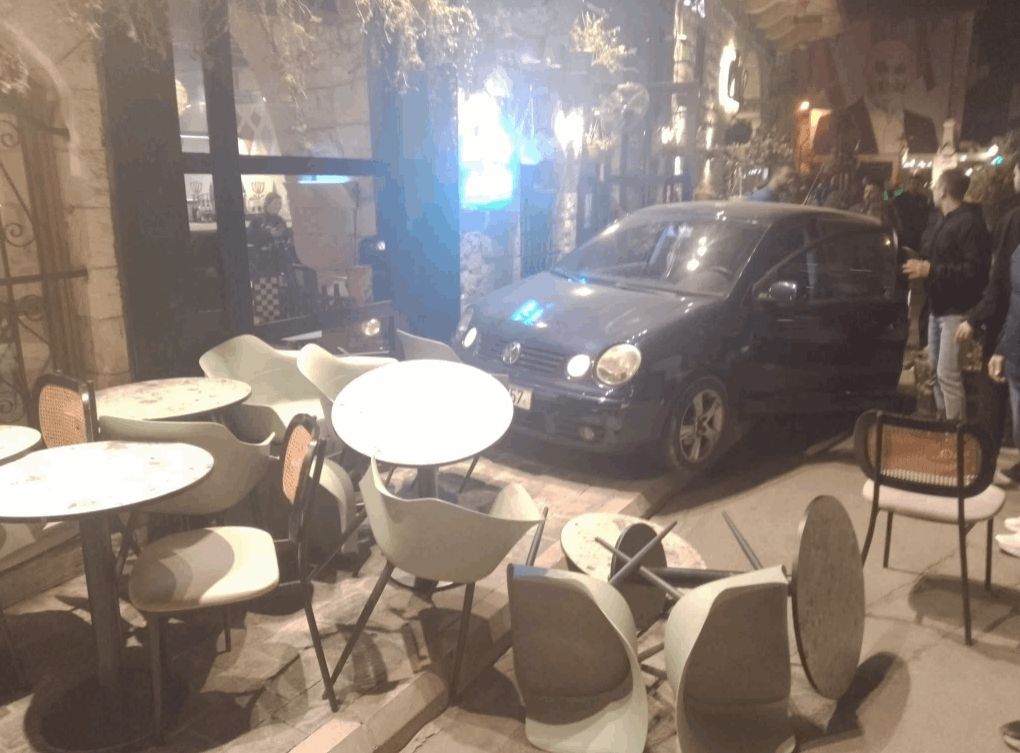 بالصور.. سيارة تقتحم مقهى في زحلة