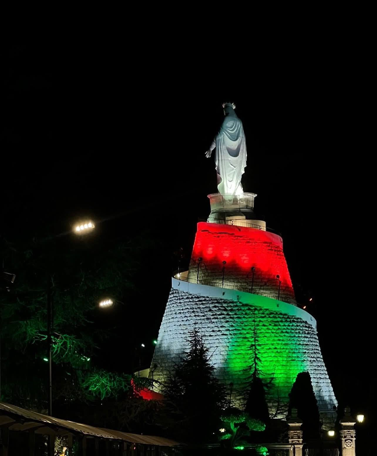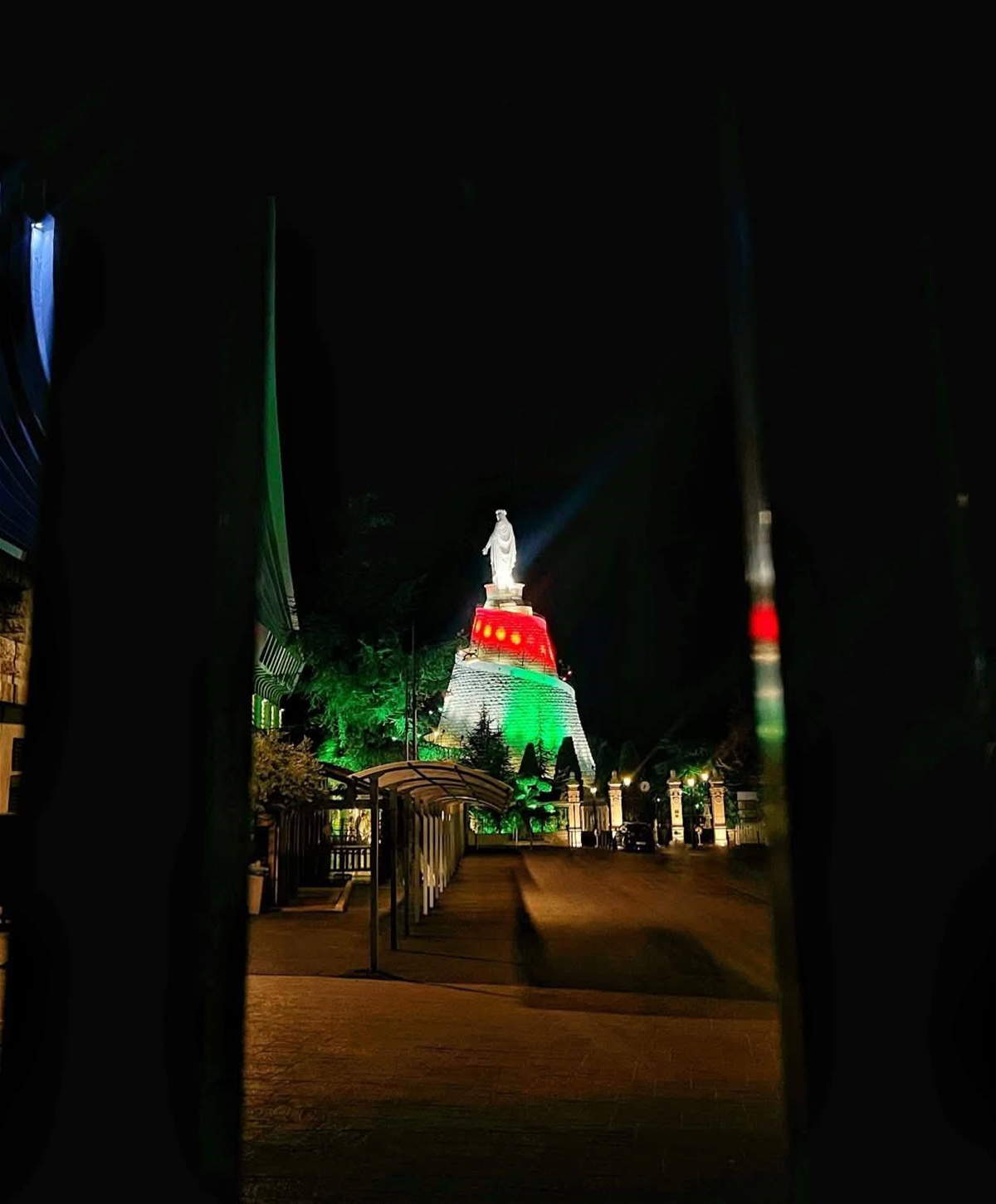 بالصورة.. إضاءة تمثل سيدة لبنان في حريصا بألوان العلم اللبناني وعلم الفاتيكان