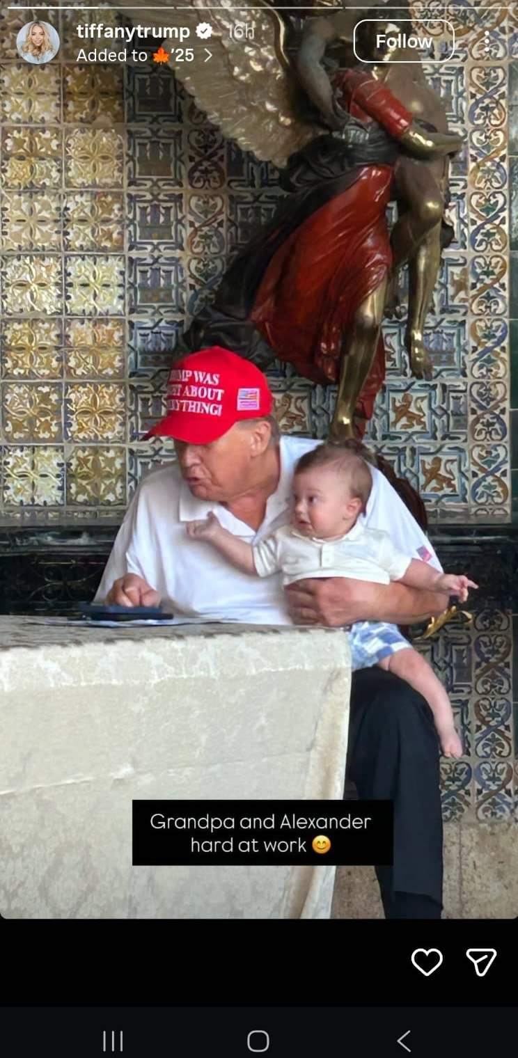 وعلّقت تيفاني على صور إبنها وأبيها بالقول: "الجدّ وألكسندر، العمل بجهدٍ".