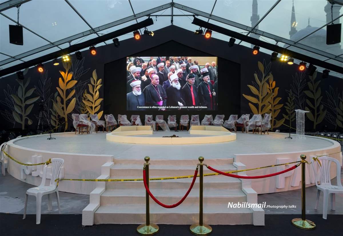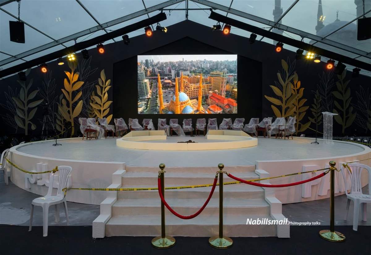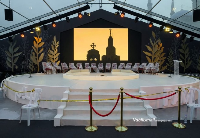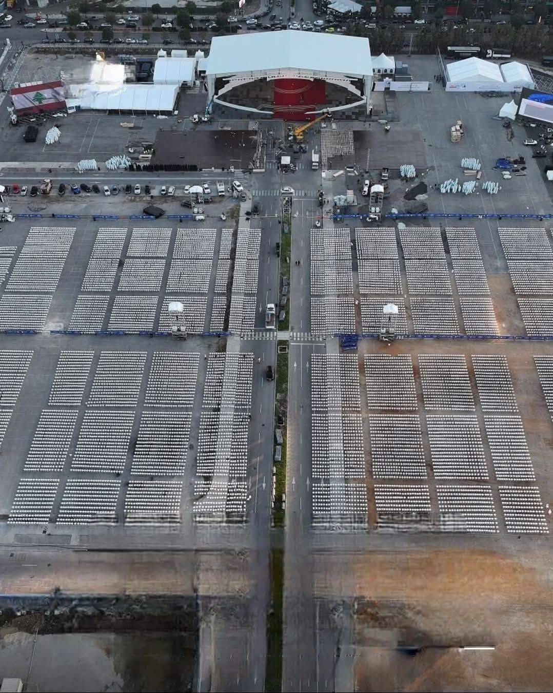 وتناقل ناشطون عبر مواقع التواصل الإجتماعي صوراً تظهر المنصة التي سيقام فيها القداس، فيما جرى توزيع آلاف المقاعد في المكان.