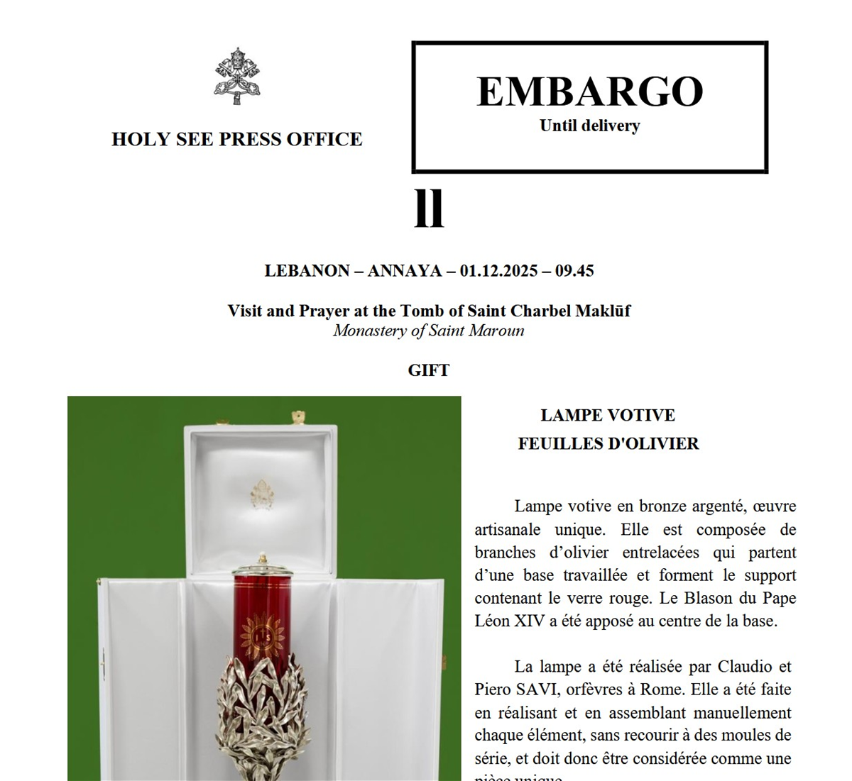 هذه هي هدية البابا إلى دير مار مارون عنايا- ضريح القديس شربل (صور)