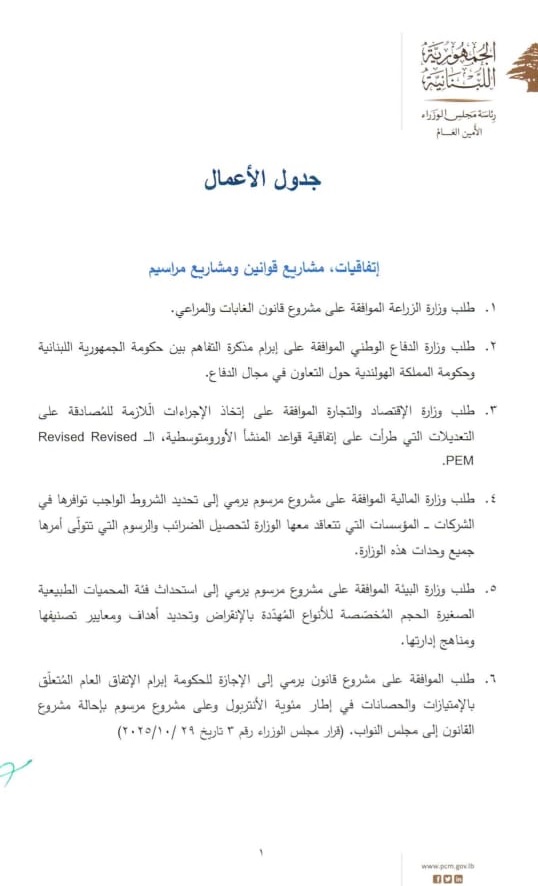 جلسة لمجلس الوزراء... إليكم جدول أعمالها