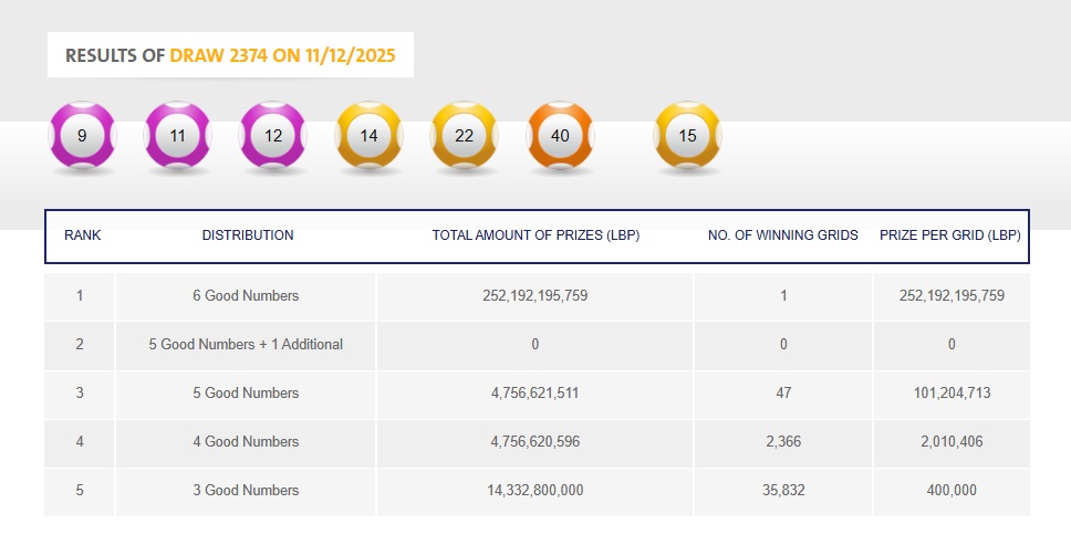وبلغت قيمة الجائزة أكثر من 252 مليار ليرة، أيّ 2.8 مليون دولار.