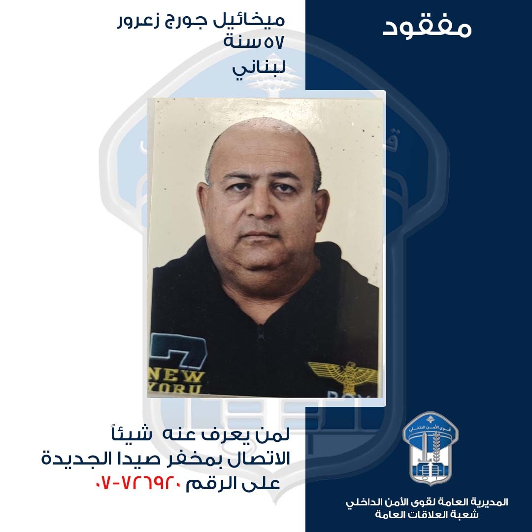 لذلك، يرجى من الذين شاهدوه ولديهم أي معلومات عنه أو عن مكانه، الاتّصال بمخفر صيدا الجديدة في وحدة
