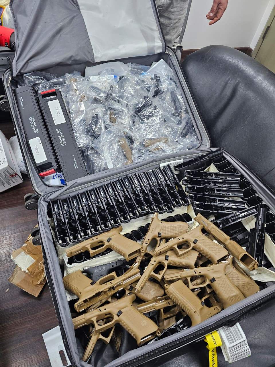 ٩٠ مسدساً كانت مفككة بطريقة احترافية ومموهة.
