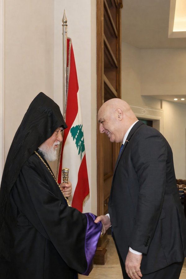 خلال زيارة إلى بعبدا... آرام الأول يهنئ الرئيس عون بالأعياد