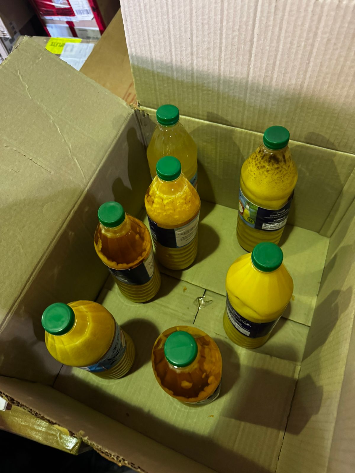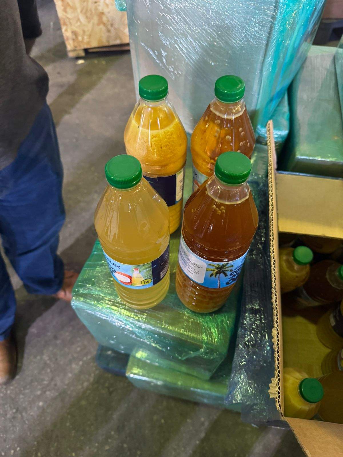 ، بوزن حوالي (٦٠٠ كلغ )، مصرح عنها على أنها زيت جوز
