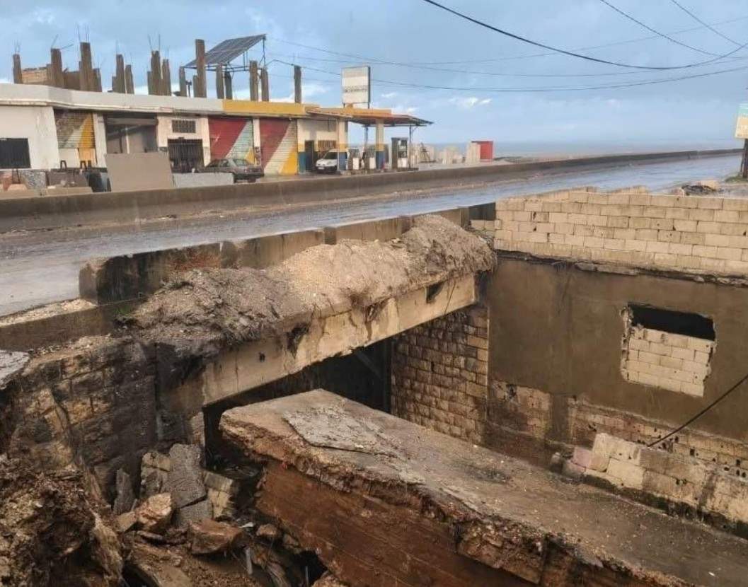 أدت الأمطار الغزيرة إلى انخساف الطريق على الاوتوستراد الدولي البحري في
