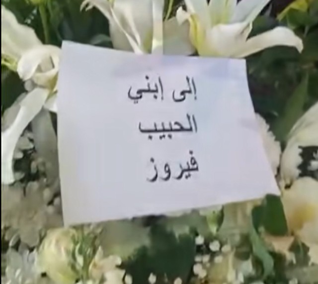 وأهدت السيدة فيروز ابنها هلي باقة ورد بيضاء في يوم وداعه الأخير كتب عليها إلى "ابني الحبيب".