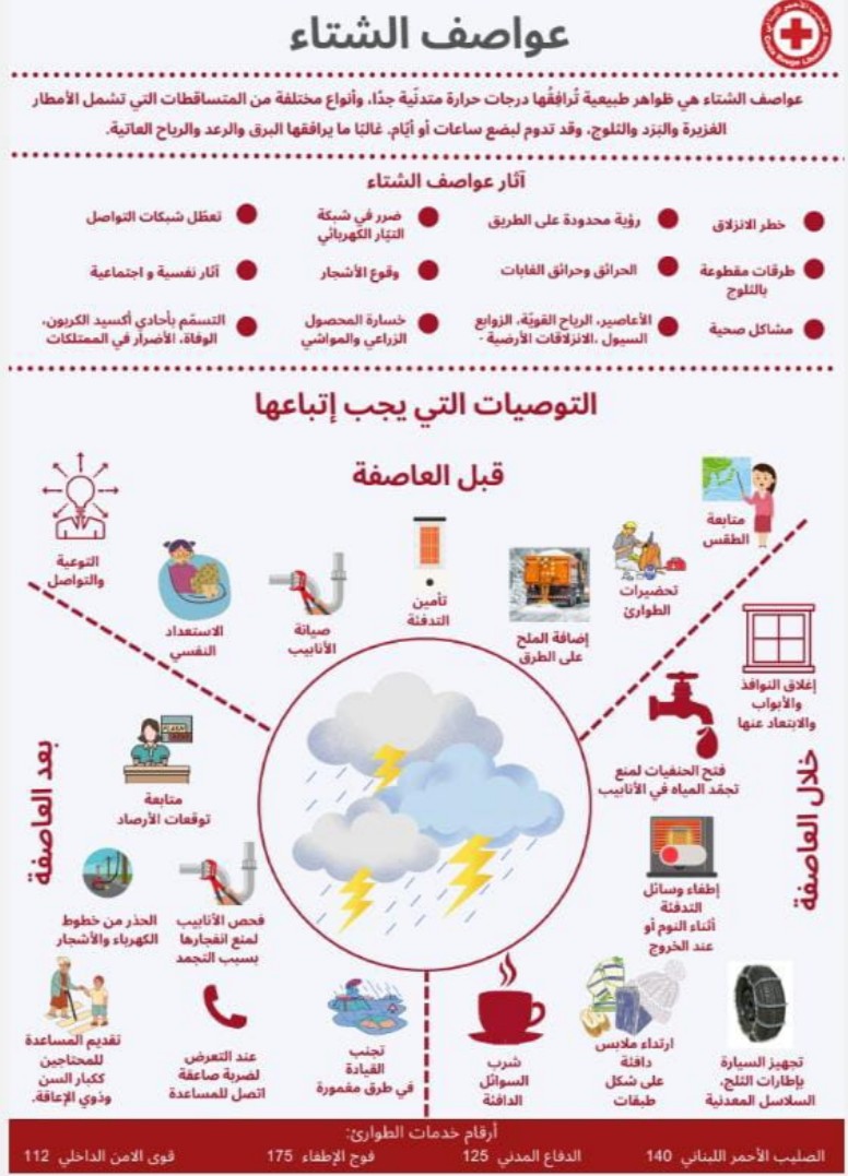 اللبناني في البقاع ارشادات وتوصيات يجب اتباعها قبل وخلال وبعد العواصف .