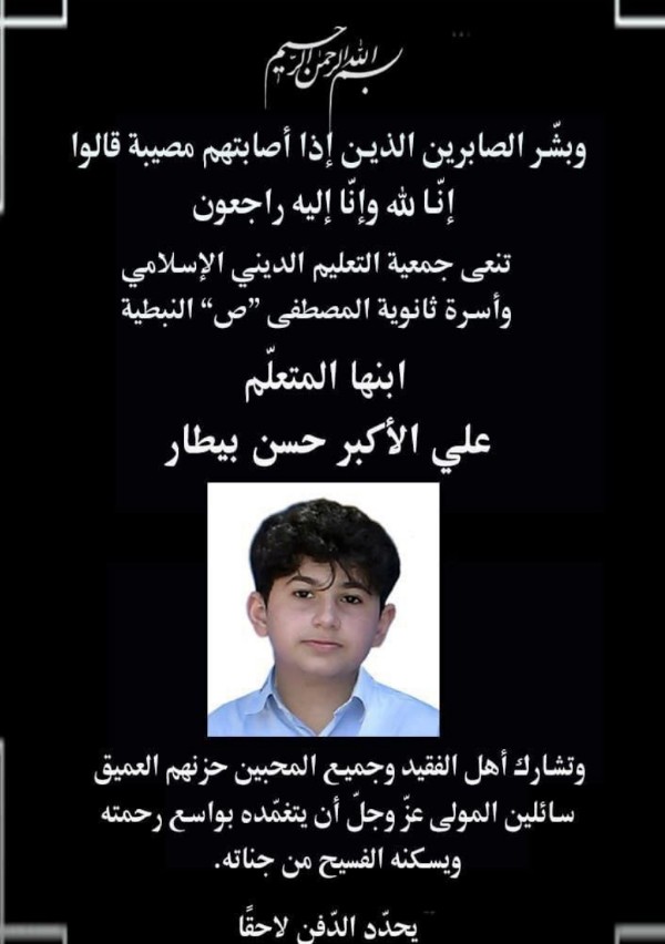 توفّي الفتى علي الأكبر