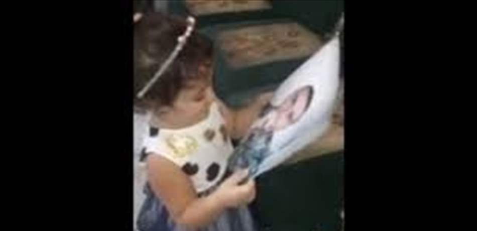 تُمسك ماريا بصورة والدها، المؤهل الشهيد إبراهيم مغيط، تقبلها مرّات عدّة وتغوص في قبلاتها، كأنّها تحاول الإلتحام بالصورة علّها تحظى بغمرة دافئة من حضن والدها، لم تحصل عليها ولن تكون لها غداً.. تنظر إلينا قائلةً "بابا".. وكأنّها تفخر بشهادة بطلها أمامنا، كأنّها تقول: "لا، أنا لست حزينة"..