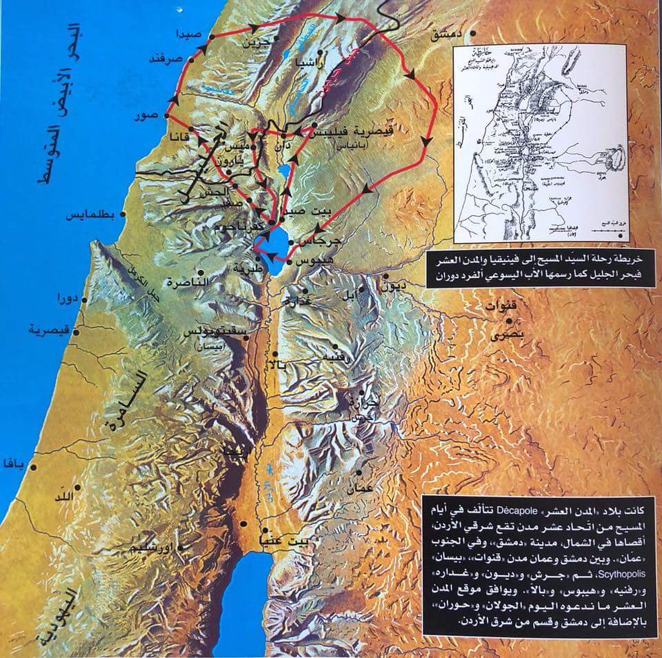 وعلّق أبي راشد قائلاً: "خارطة عمرها 110 أعوام تظهر المناطق التي مشى فيها السيد المسيح بحسب إنجيل مرقس 31/7: وانصرف من أراضي صور ومرّ بصيدا قاصداً بحر الجليل، ومجتازاً أراضي المدن العشر".