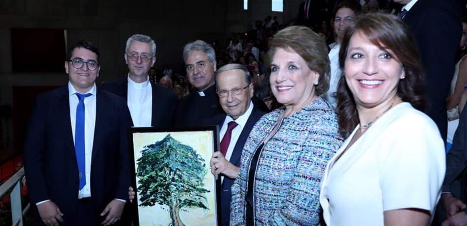 حضر رئيس الجمهورية العماد ميشال عون واللبنانية الاولى السيدة ناديا الشامي عون الحفل الذي اقامته مدرسة سيدة الجمهور مساء امس لمناسبة تخريج طلاب قسمها الثانوي للسنة الدراسية 2018-2019 وعددهم 270 طالبا وطالبة، من بينهم حفيد الرئيس عون ايلي روي الهاشم، نجل كريمته ومستشارته الرئيسية السيدة ميراي عون الهاشم والسيد روي الهاشم، في قاعة المركز الرياضي والثقافي والاجتماعي التابع للمدرسة، في حضور افراد عائلة الرئيس عون: السيدة كلودين عون روكز وشانتال عون باسيل، وعدد من الشخصيات الروحية والثقافية والتربوية، إضافة الى أهالي الخريجين وأساتذة المدرسة.