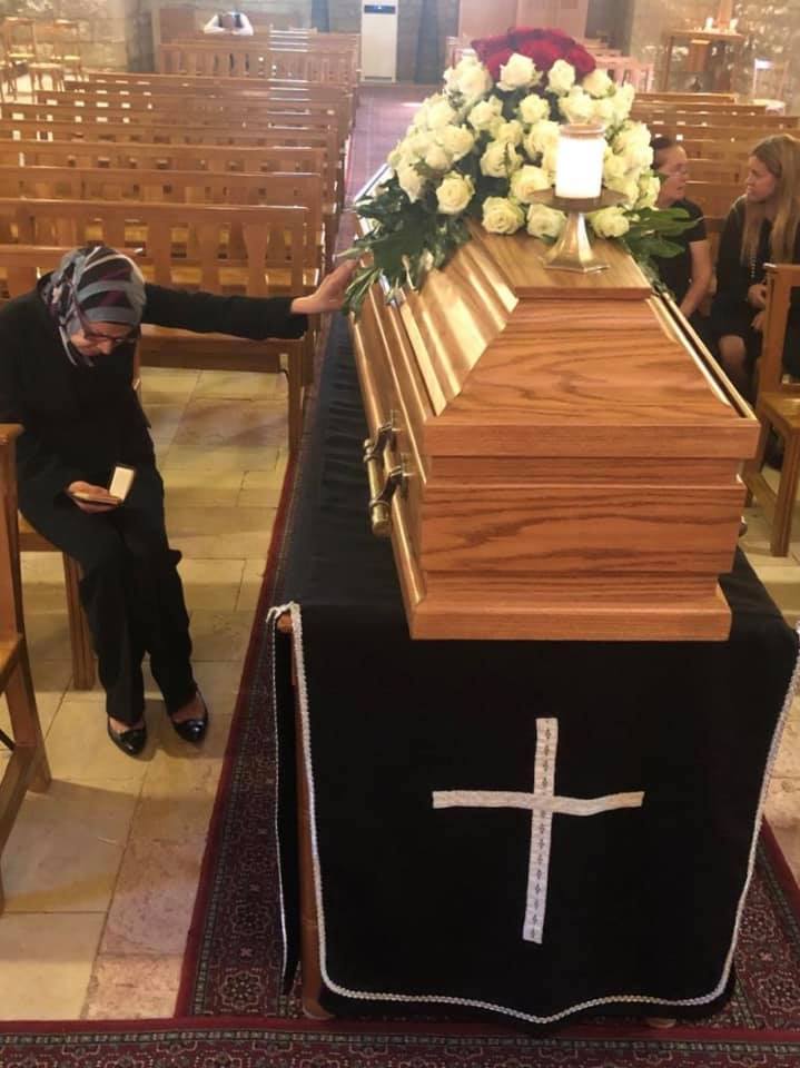 الصورة نشرتها النّاشطة جمانة شهّال تمري، تُظهر سيّدة محجّبة تجلس داخل كنيسة في منطقة بيت الدّين – الشّوف، وتضع يدها على نعش جارتها المسيحية المتوفّاة وتصلّي لها وتقرأ الفاتحة والقرآن على روحها.