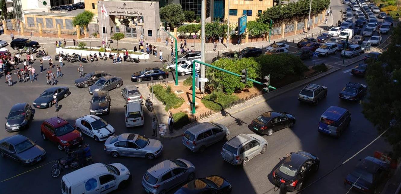 قطع الطريق عند مستديرة الاونيسكو #بيروت من قبل بعض المحتجين pic.twitter.com/MBalshnPJB — التحكم المروري (@tmclebanon) August 19, 2019