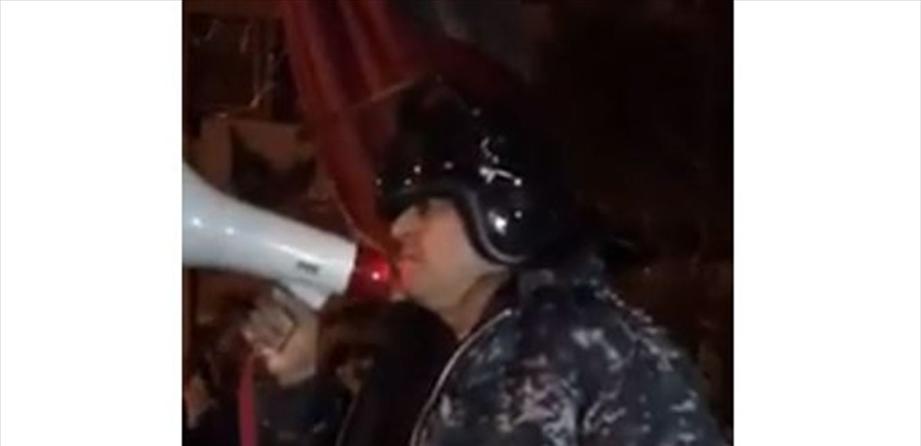توجه أحد عناصر قوى الأمن الداخلي في شارع الحمرا، إلى المتظاهرين عبر مكبّر الصوت، طالباً منهم الإلتزام بسلميّة التحرّك.