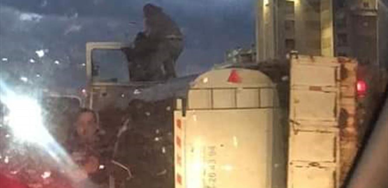 بالفيديو.. شاهدوا لحظة انقلاب شاحنة