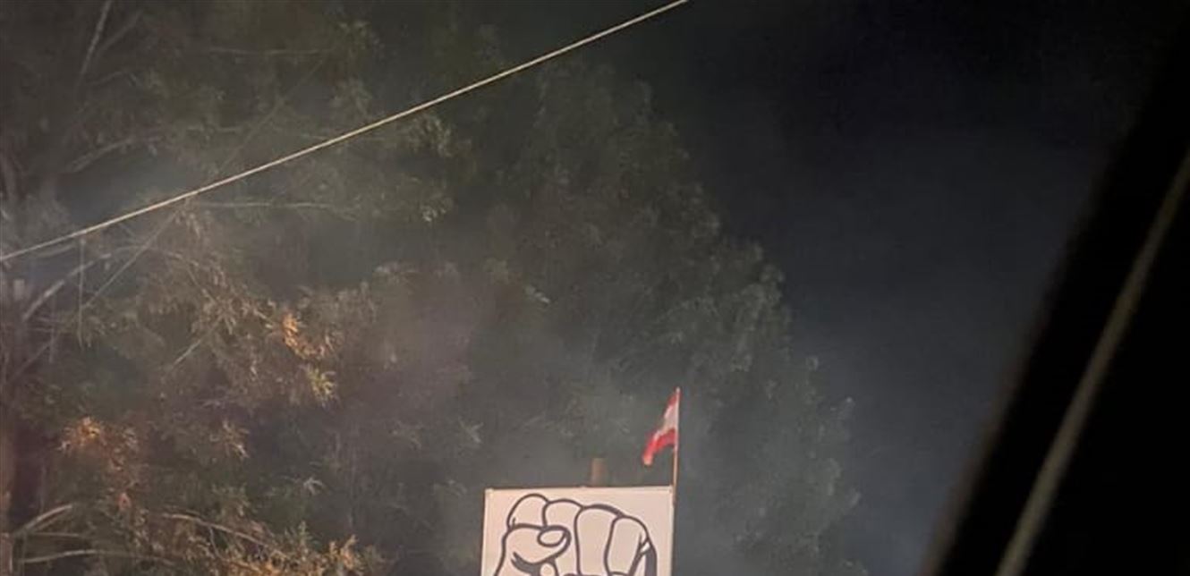أقدم مجهولون هذا المسار على إحراق قبضة الثورة في النبطيةبعد أن تم وضعها اليوم.