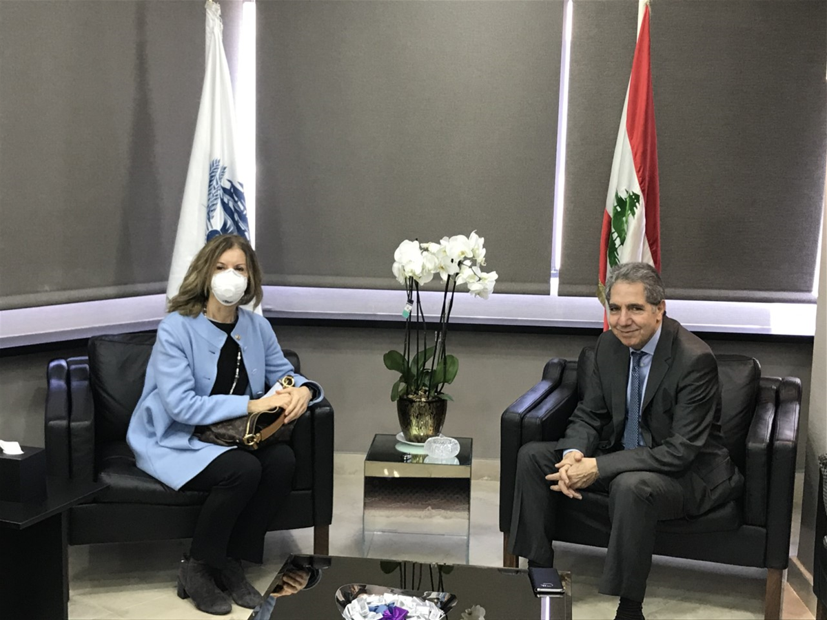 استقبل وزير المالية، غازي وزني، سفيرة إيطاليا في لبنان Nicoletta Bombardiere، وجرى التداول بالعلاقات الثنائية بين البلدين وسبل التعاون بينهما، لاسيما في المجال الاقتصادي.